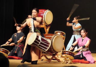 太鼓だけでなく笛や尺八などの楽器も加わり大いに楽しませてくれた。