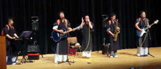 ギターやサックスを手にずらりと並びグループ紹介から始まった。